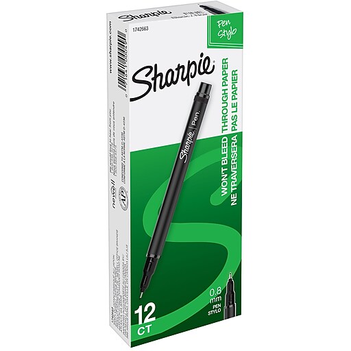 Sharpie® Pens, Fine Point, Black, 12/pk (1742663) Staples